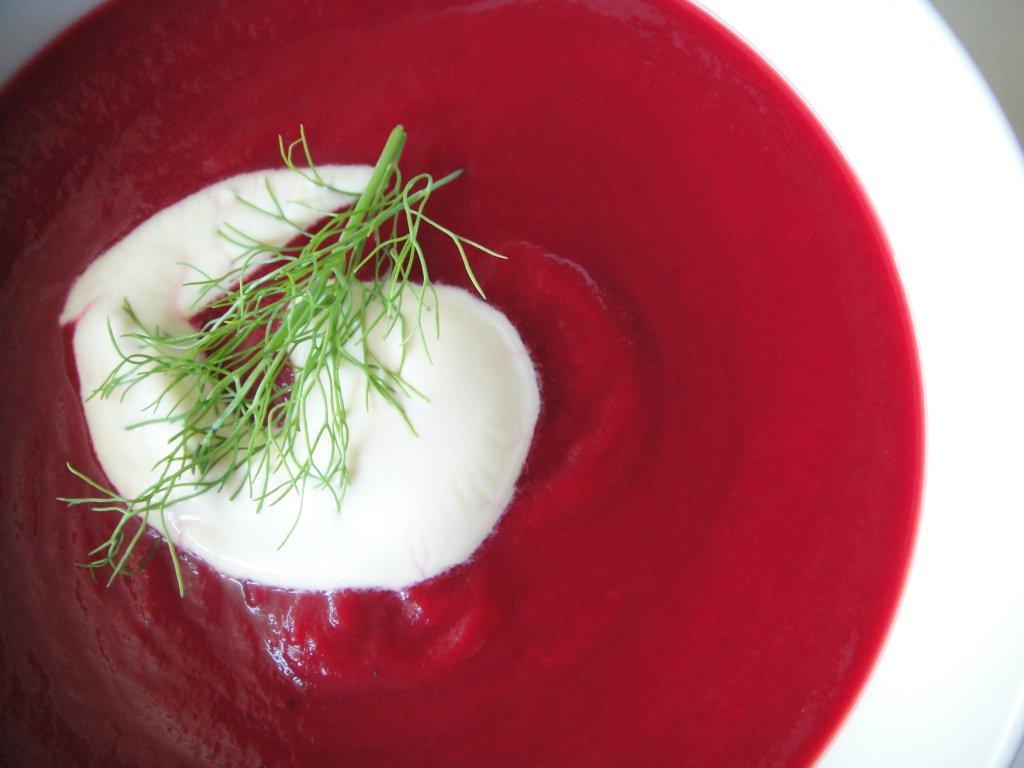 Barszcz or borscht (Polish or Russian) with sour cream and dill