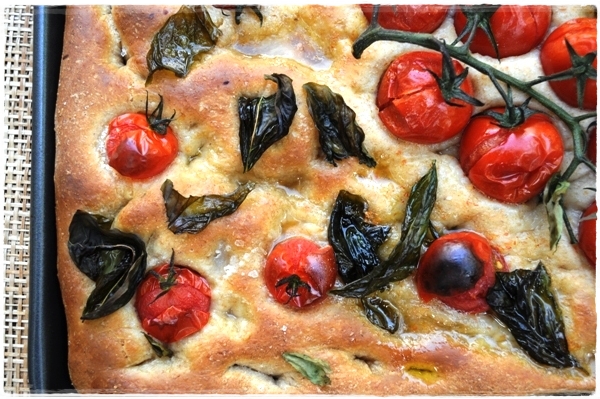 Fresh tomato and basil focaccia