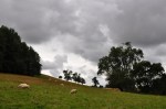 A large field with sheep far in the distance, flanked by trees, was a good place to sit and eat our sandwiches. The odd, large raindrop fell but it didn’t come to anything. Counting all our blessings we left the sheep behind, made a short acquaintance with some cows and calves then followed a long, straight path through a huge cornfield. The soil was heavy clay and we soon felt about two inches taller with mud-laden boots.