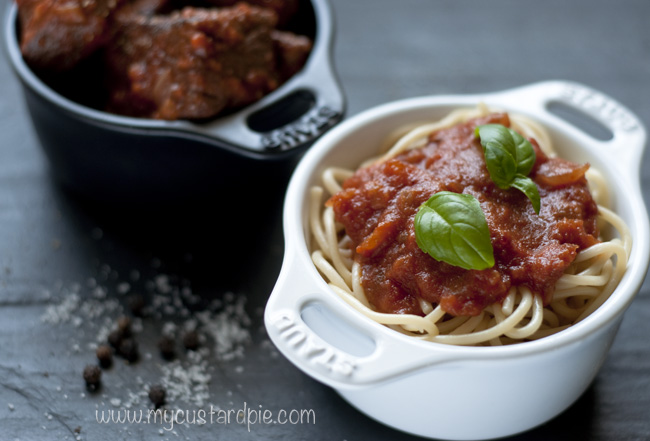 The method of cooking the meat in the sauce is traditional. Italian’s would eat the sauce with pasta as a prima course and then the meat as a main.