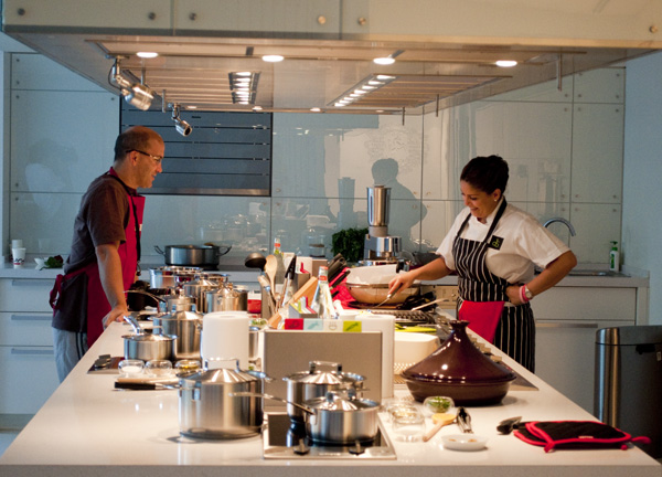 But a workshop doesn’t depend on light alone. Here the Miele Gallery space really comes into its own with a small conference area at one end with funky red chairs that look like they’ve escaped from a sports car, built in projector screen, white board, lots of powerpoints, all of which can be screened off for privacy or opened up. A team of staff make sure the experience (from tea and coffee, to washing up, to IT) is seamless. Have I tempted you? Miele hire out the space for private functions and run regular cooking classes.