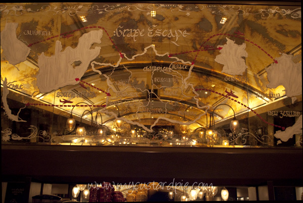 Next was la terrine de foie gras, poireaux truffes; You’d expect the foie gras to be the star wouldn’t you, but it was the soft, buttery leeks that won the day. A puree of artichoke was lovely although it revealed why French cuisine is often not vegetarian-friendly – there was foie gras in the purée! They were lovely flavours but quite rich and salty after the other things we’d tasted. Finally we had a choice of chicken roasted with black truffles under the skin or sea bass. Although the chicken choosers raved about the sauce (which was really good) I was delighted with my fish dish as it was the closest to that ambrosial carbo-truffle combination that takes you away from the table and off into heavenly clouds of sensory enjoyment. The beautifully cooked sea bass fillet was accompanied by a little mound of creamy, buttery mashed potato flecked with black truffle.