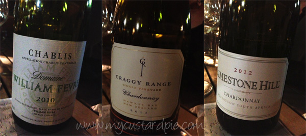 First up we compared William Fevre Chablis 2010, Craggy Range Kidnappers Block Chardonnay 2011 and Limestone Hill Chardonnay 2012.
