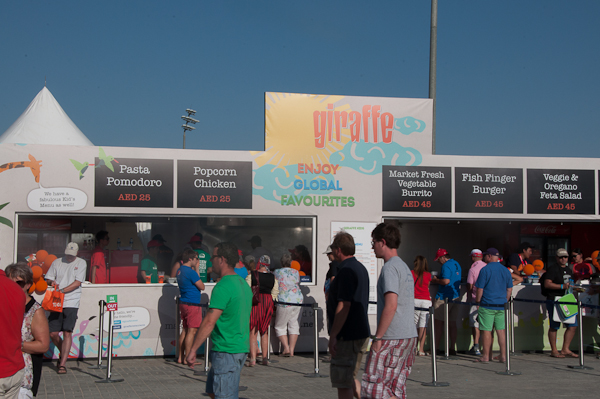My favourite hang out is at the MMI Wine Bar which overlooks pitch 2. Don’t expect fine wine tasting just quaffable wines from Australia which are not overpriced (for a Dubai event). A bottle of Aussie Sauvignon Blanc is AED 120, with the wines on offer predominantly by de Bortoli Wines (from cool climate, Yarra Valley, close to Melbourne). There was a nice rosé that which I sipped as the sun went down last year…