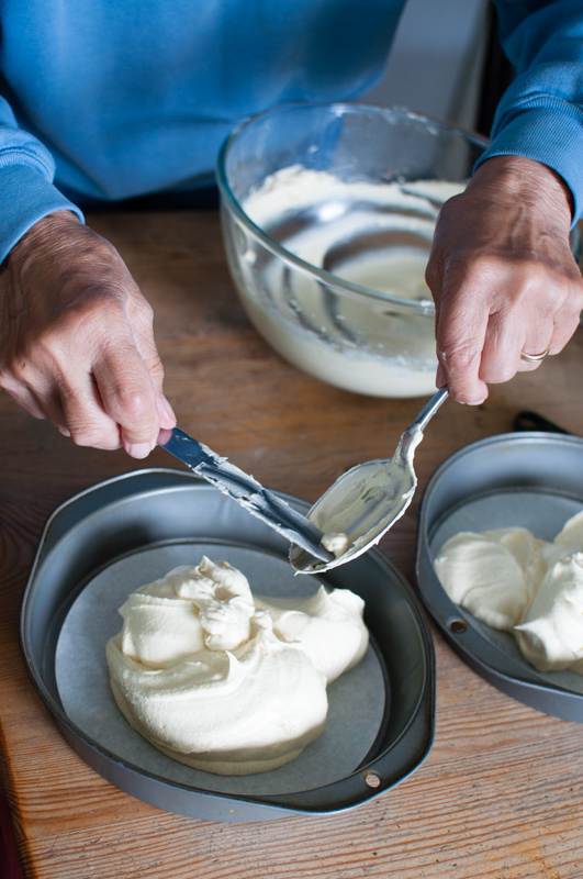 Divide the mixture into tins. Classic Victoria sandwich cake on www.mycustardpie.com