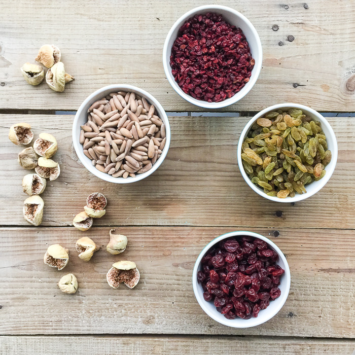 I’ve never seen unshelled pine nuts before. Dried barberries, dried cherries, dried figs and some tangy green sultanas. Iranian goodies from Mr Reza – well worth a visit to his Deira shop