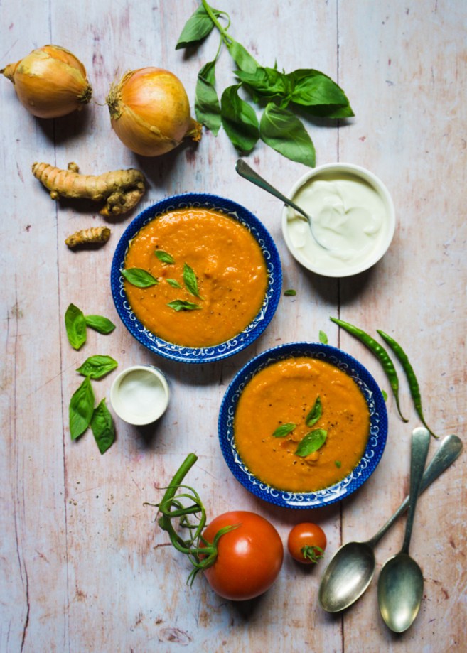 Spicy sweet potato, tomato and turmeric soup {+ some photo tips}