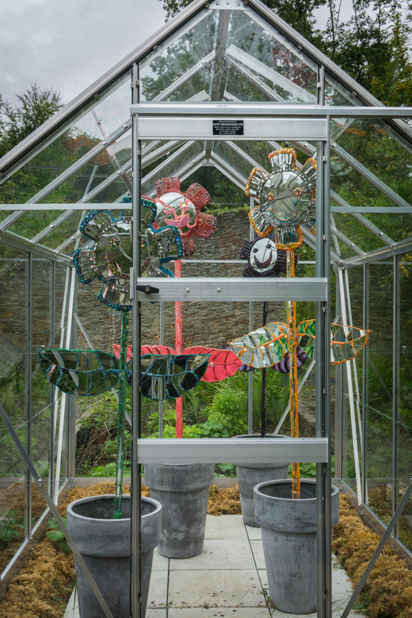 Four Flowers of the Apocalypse by Andrew Logan in a glasshouse at Buckland Abbey