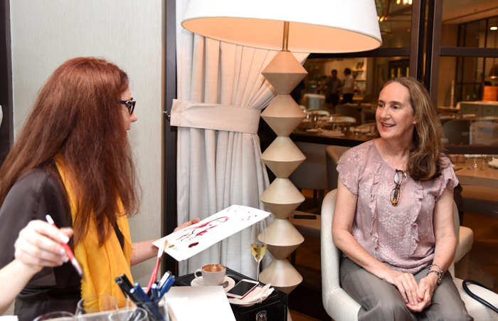 Hatty Pedder painting my portrait in wine