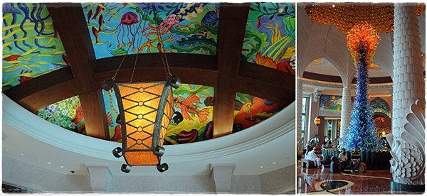 Whenever I walk into Atlantis, Dubai on the Palm I’m taken aback. I forget just how vast the space is, how vivid the colours, how utterly over the top the interior decoration is – like ‘Finding Nemo’ on acid. It’s a Friday afternoon and I’m meeting a bunch of fellow foodies in the Grand Lobby. The place is heaving. The doors are continually opening and wafts of the saturated hot air billow in. There’s a constant flow of people dressed in everything from towelling robes to gold lamé to dish-dashes, walking from one side of this cavernous pink palace to the other.